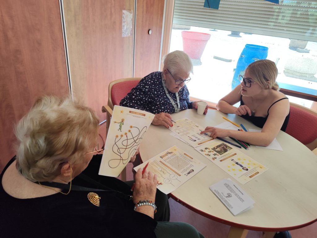 Après avoir lu et analysé le célèbre conte de Saint-Exupéry, les élèves de CAP AAGA ont eu l’opportunité de participer à une activité de lecture à voix haute à l’EHPAD Lucien Vivien de Montdidier, en collaboration avec l’animatrice Mélanie.