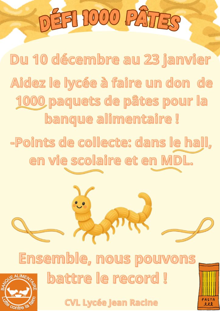 Avec 1200 élèves au lycée, il suffirait qu’une personne sur chacun de nous apporte un paquet pour relever le défi 🎯