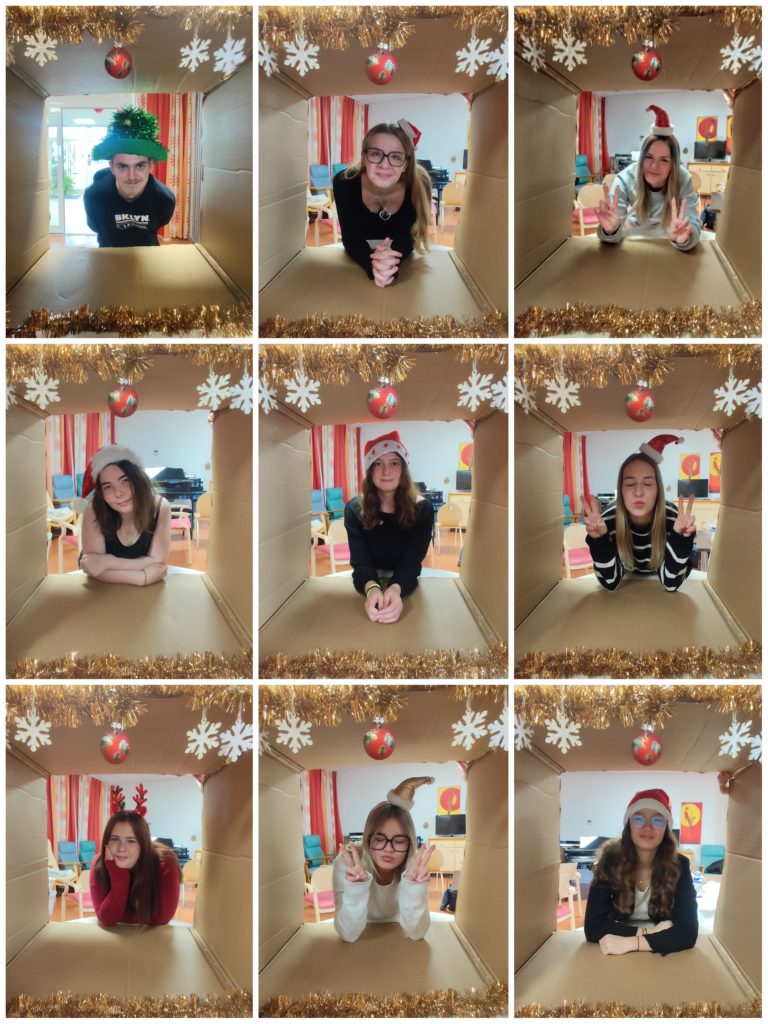 Ce projet consistait à créer un calendrier de l’Avent entièrement fait main, à partir d’objets récupérés. Dans chaque case, les élèves ont glissé un mot doux, un chocolat, un petit père Noël en pompon confectionné avec soin, ainsi qu’un cadeau de Noël réalisé par leurs mains.