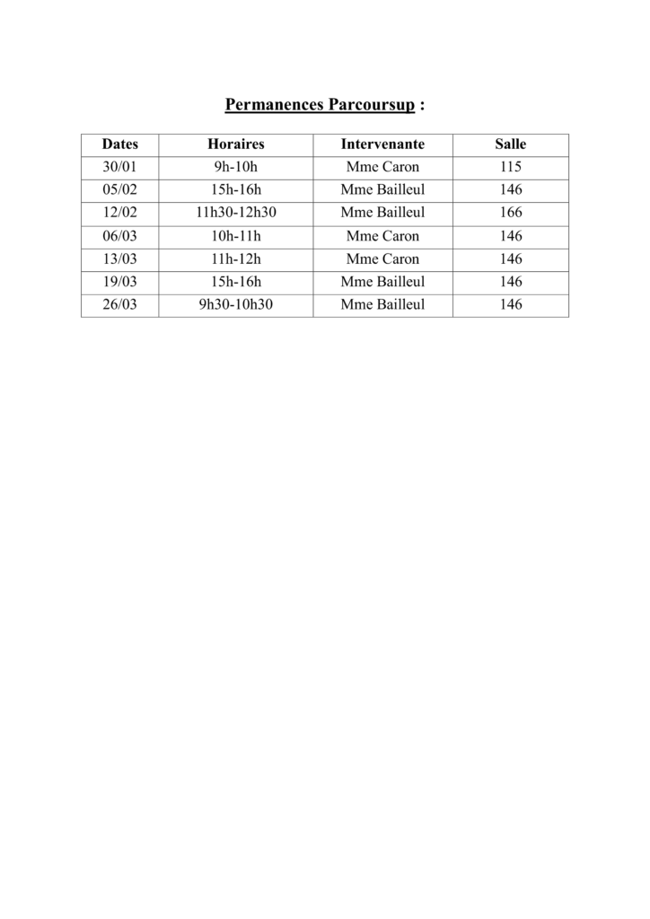 👩🏫 Les psy-EN Mmes Bailleul et Caron proposeront des permanences en salle informatique afin d’accompagner les élèves dans l’utilisation de la plateforme PARCOURSUP.